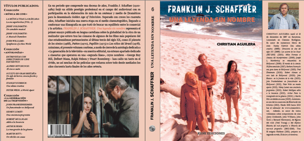 En un periodo que comprende una docena de años, Franklin J. Schaffner (1920-1989) forjó un sólido prestigio profesional en el campo del audiovisual con su participación en la elaboración de más de un centenar y medio de Dramáticos para la denominada Golden Age of Television. Superado con creces los cuarenta años, Schaffner iniciaba una nueva etapa en el medio cinematográfico, llegando a conformar una filmografía en que trató de buscar un equilibrio entre lo comercial y lo artístico. FRANKLIN J. SCHAFFNER: Una leyenda sin nombre representa el primer ensayo publicado en lengua castellana sobre la globalidad de la obra de un realizador que estuvo tras las cámaras de algunos de los films más populares del cine estadounidense pertenecientes al último tercio del siglo XX, como El planeta de los simios (1968), Patton (1970), Papillón (1973) o Los niños del Brasil (1978). Asimismo, el presente volumen contiene, a modo de cierre de la antología dedicada a «La generación de la televisión» en nuestra editorial, un extenso apartado dedicado a cineastas que operaron en una «segunda línea», cuyos nombres —George Roy Hill, Delbert Mann, Ralph Nelson y Stuart Rosenberg— han caído un tanto en el olvido, no así muchas de las películas que rodaron sobre todo desde mediados los años cincuenta hasta finales de los años setenta.